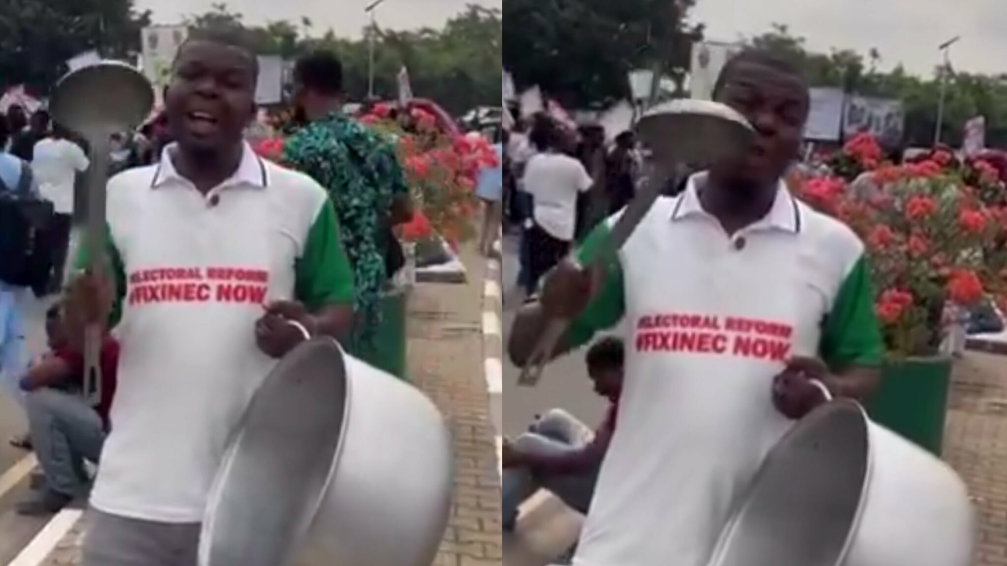 News update Man flies from Lagos to Abuja with large pot, spoon to join protest, demands electronic transmission of election results A Nigerian man protests at the National Assembly in Abuja, demanding mandatory electronic transmission of election results Newsflez February 11, 2026 1 minute read A Nigerian man protests at the National Assembly in Abuja, demanding mandatory electronic transmission of election results Please like and share : Post navigation Previous: Male refugees stigmatised across Europe: ‘This kind of stuff really hurts’Next: “It was a needless death” – Lucky Elohor’s mentor reveals how entrepreneur passed away Related Stories News update Super Falcons beat Cameroon 3-1 in 2026 WAFCON warm-up Newsflez March 3, 2026 News update “What audacity is this?’ – Lady cries out over man’s request after sending her ₦1.5M Newsflez March 3, 2026 News update Taliban law now allows husbands to beat wives if no bones are broken Newsflez March 3, 2026