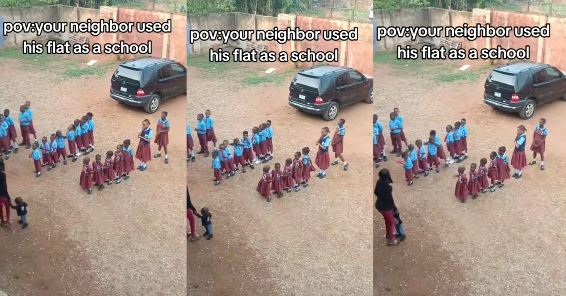 News update “I no dey hear word”- Lady cries out as neigbour opens school in residential compound A lady has gone viral online after sharing a video capturing an unexpected scene in her residential compound Newsflez March 4, 2026 1 minute read A lady has gone viral online after sharing a video capturing an unexpected scene in her residential compound Please like and share : Post navigation Previous: Balde ruled out of Newcastle UCL tie, Kounde doubtfulNext: Hegseth says more US forces arriving in Middle East as Iran war ramps up Related Stories News update Iris Dena Ship: U.S. submarine sinks Iranian warship in international waters Newsflez March 4, 2026 News update Young Nigerian couple trends online after welcoming first child Newsflez March 4, 2026 News update “He removes her teeth every time they fight” – Woman shares shocking marriage experience Newsflez March 4, 2026