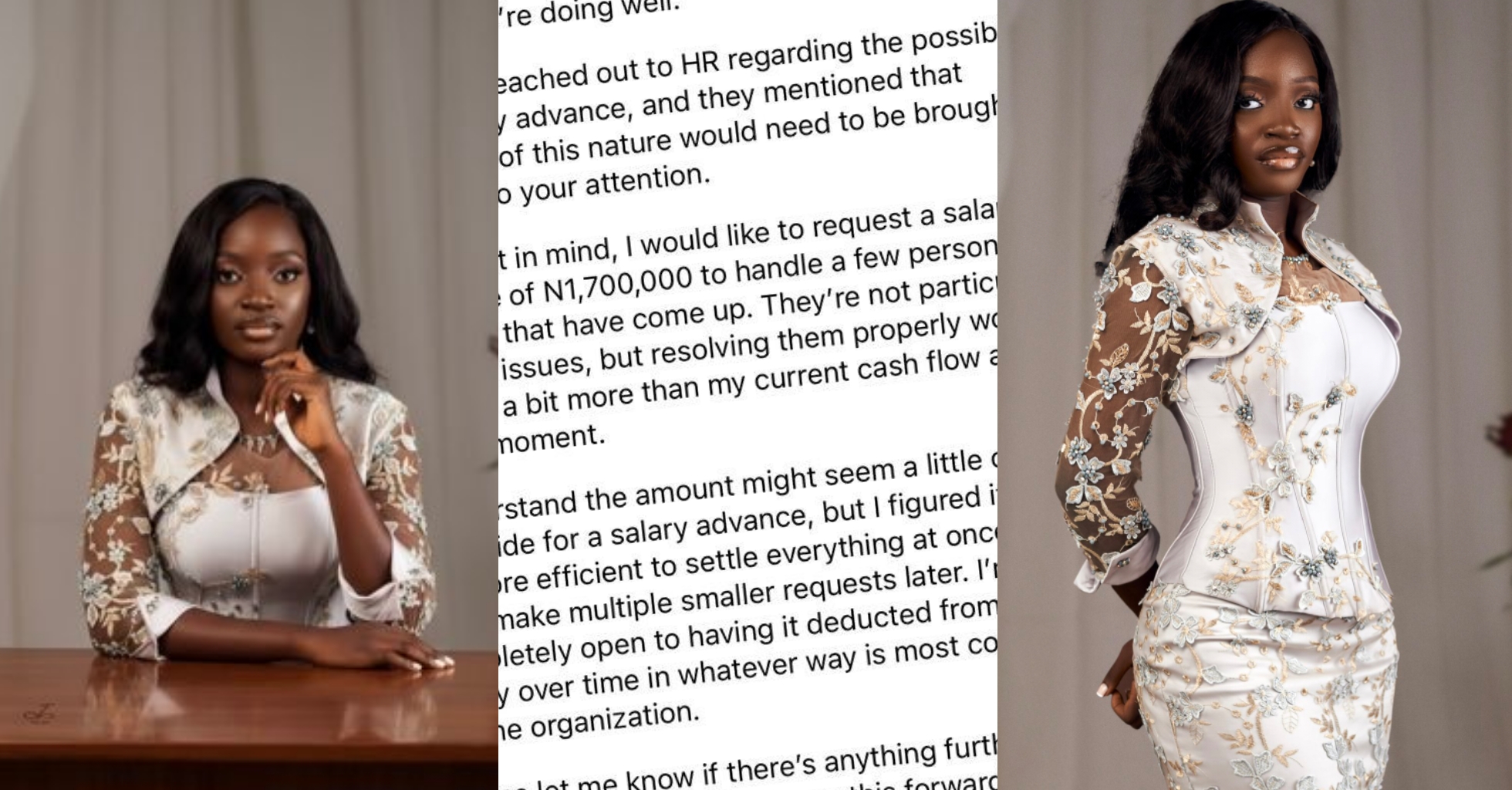 News update “17 months of her salary”- Woman cries out over new employee’s shocking request An entrepreneur has shared details of a request received from a recently hired employee, sparking reactions online. Newsflez March 10, 2026 1 minute read An entrepreneur has shared details of a request received from a recently hired employee, sparking reactions online. Please like and share : Post navigation Previous: “Please help me…” — Pregnant woman begs authority to release husband jailed for 6 years over domestic violenceNext: Galatasaray 1-0 Liverpool: Osimhen shines as Reds suffer defeat in Istanbul Related Stories News update BREAKING: “Owner of convention venue under pressure to deny us facility” — ADC raises alarm, accuses Wike Newsflez April 14, 2026 News update Three babies born into Sudan war every minute, charity warns Newsflez April 14, 2026 News update Super Typhoon Sinlaku bears down on Northern Mariana Islands, Guam Newsflez April 14, 2026