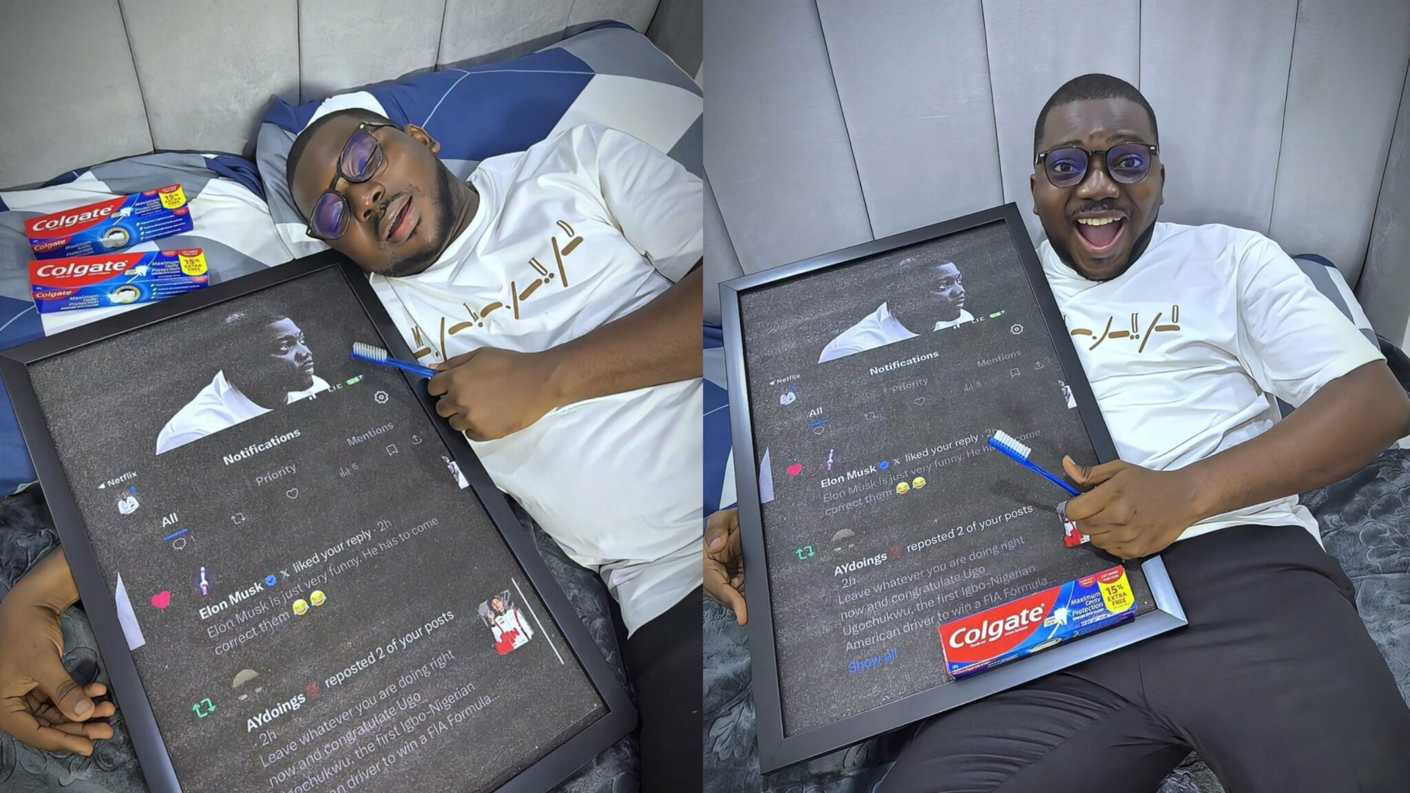 News update “If it reach your turn no frame am” — Man frames post after Elon Musk likes tweet Elon Musk liked a Nigerian doctor’s tweet, which went viral after being framed online as a moment of recognition. Newsflez March 10, 2026 1 minute read Elon Musk liked a Nigerian doctor’s tweet, which went viral after being framed online as a moment of recognition. Please like and share : Post navigation Previous: “I’m pregnant but the baby belongs to…” – Woman sparks online reactions with bold confessionNext: “I pulled it out”- Man shares how much he saw before withdrawing cash in US bank Related Stories News update China dismisses Vice Minister of Foreign Affairs Sun Weidong Newsflez April 14, 2026 News update Outrage in Kwara as residents reject alleged Tinubu Govt aid, demand action on abductions Newsflez April 14, 2026 News update 2027: Nobody can match my plans for the North Newsflez April 14, 2026