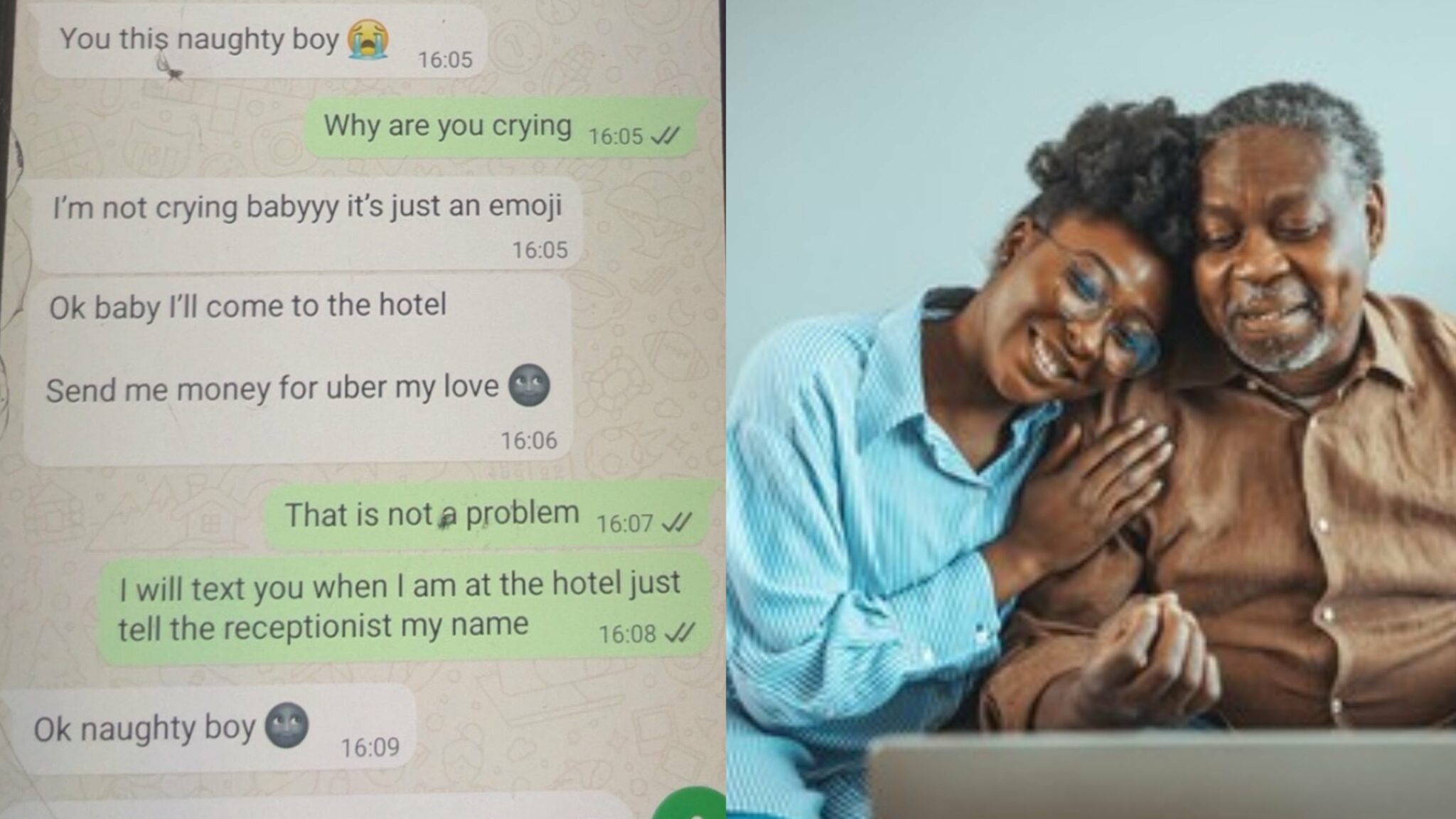 News update “My daddy wey I dey fear, one girl dey call am ‘naughty boy’” — Man shares father’s chat with lover A man sparks reactions online after sharing a private chat between his father and his alleged girlfriend, revealing a surprising side Newsflez March 18, 2026 1 minute read A man sparks reactions online after sharing a private chat between his father and his alleged girlfriend, revealing a surprising side Please like and share : Post navigation Previous: Woman shares her father’s reaction after she got pregnant out of wedlockNext: “Don’t marry a broke man at 35, he won’t make it” – Lady advises women on dating choices Related Stories News update BREAKING: “Owner of convention venue under pressure to deny us facility” — ADC raises alarm, accuses Wike Newsflez April 14, 2026 News update Three babies born into Sudan war every minute, charity warns Newsflez April 14, 2026 News update Super Typhoon Sinlaku bears down on Northern Mariana Islands, Guam Newsflez April 14, 2026